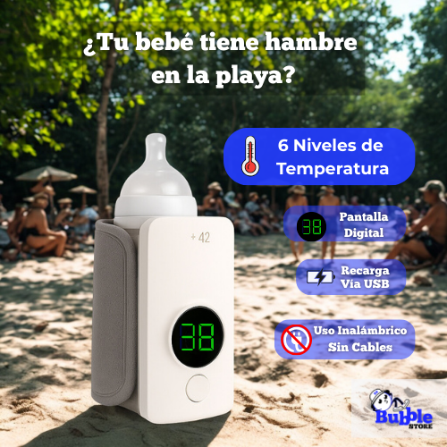Lo guardo en la pañalera, lo enciendo, elijo la temperatura y listo. No necesito enchufes, no necesito microondas, solo presiono un botón y la leche queda perfecta, tibia y segura.